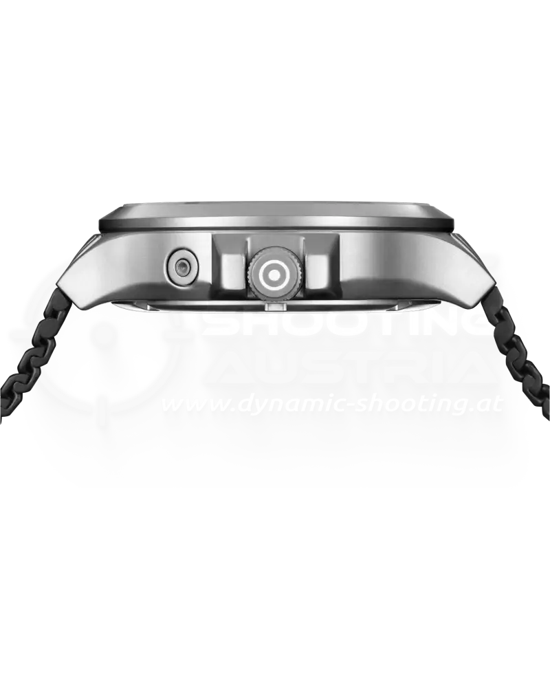 Die GW-19-2-22 verbindet präzise Technik mit moderner Funktionalität. Das silberfarbene Edelstahlgehäuse umrahmt ein schwarzes Zifferblatt mit Swiss Super-LumiNova® auf Zeigern und Indizes. Ein besonderes Detail ist die Gangreserveanzeige – so behalten Sie den Ladestatus des Solaruhrwerks jederzeit im Blick. Der markante Patronenhülsenboden mit roten Akzenten setzt einen charakteristischen GLOCK-Touch. Abgerundet wird das Design durch ein robustes, schwarzes Edelstahl-Mesharmband und 10 ATM Wasserdichtigkeit – gebaut für Alltag, Range und Business!