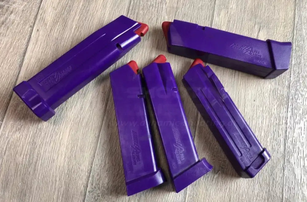 Das Trainingsmagazin von Double Alpha ist so konzipiert, dass es das Gefühl und Handling eines vollgeladenen, echten Magazins so real wir möglich nachahmt. Es ermöglicht die Abgabe von Schüssen der Pistole in leerem Zustand mit gleichem Gewicht wie mit einem voll geladenen Pistolenmagazin.