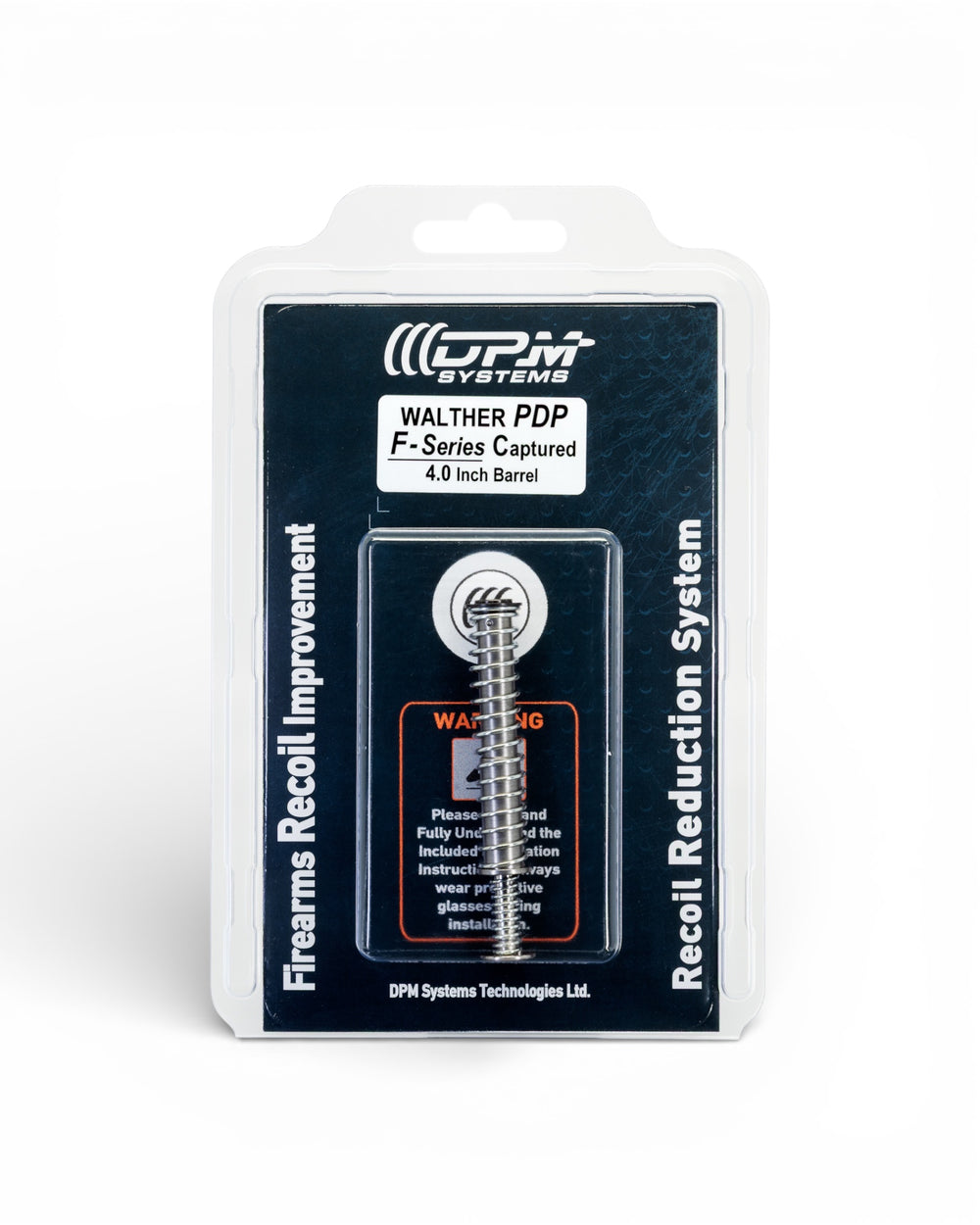 Das DPM Recoil Reduction System ersetzt die originale Federführungsstange der Walther PDP F-Series mit 4 Zoll Lauf. Die Captured Ausführung bleibt als Einheit geführt und wird ohne Änderungen an der Pistole montiert.