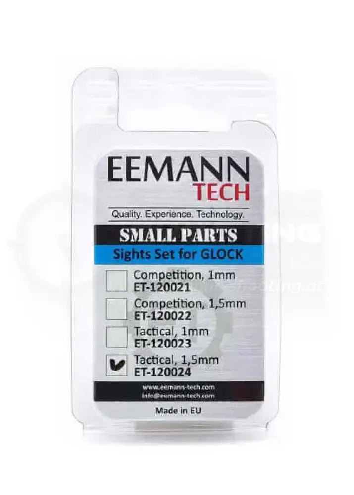 Die Tactical Glock Visierung von Eemann Tech ist mit einem roten Fiberglas Korn sowie einer grünen Fiberglas Kimme ausgestattet, welche wahlweise im Durchmesser von 1.0mm oder 1.5mm verfügbar sind.