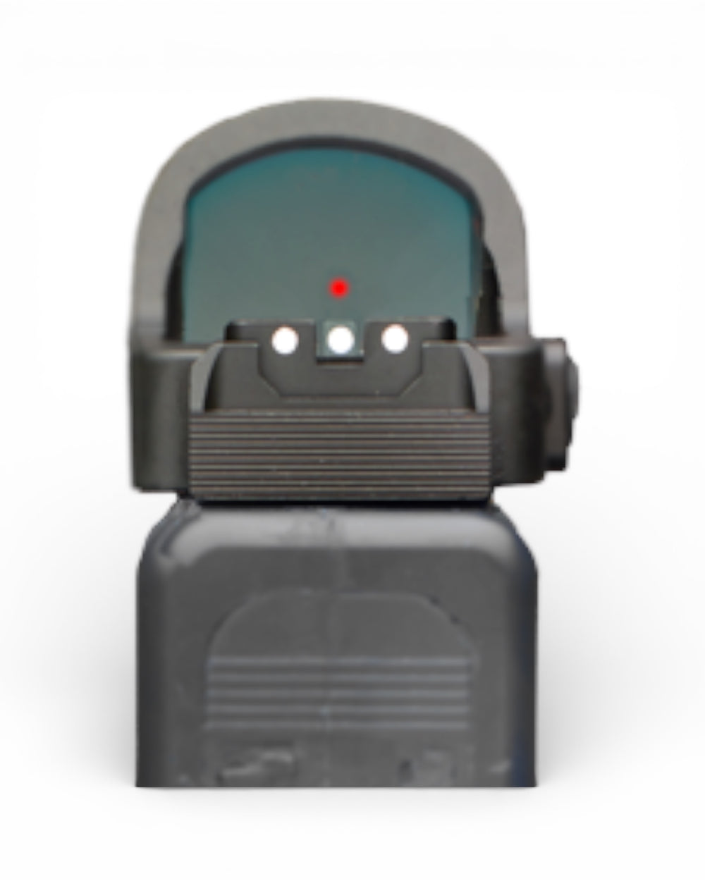 Das verstellbare LPA RDF01GL Visier-Set wurde speziell für Glock MOS und Optic Ready Pistolen entwickelt, bei denen ein Red Dot bereits montiert ist. Durch die erhöhte Bauhöhe bleibt ein sauberes Co-Witness Visierbild als Backup zum Red Dot erhalten, ohne auf schnelle Zielerfassung zu verzichten.