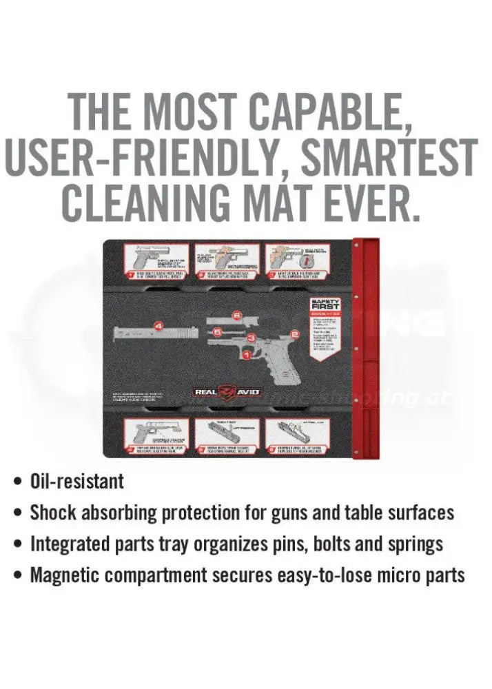 The Real Avid Glock Smart Mat® is a professional gun cleaning mat . It's large enough to optimally disassemble and clean any pistol, including a Glock. This cleaning mat also features graphic illustrations showing step-by-step disassembly and cleaning procedures.