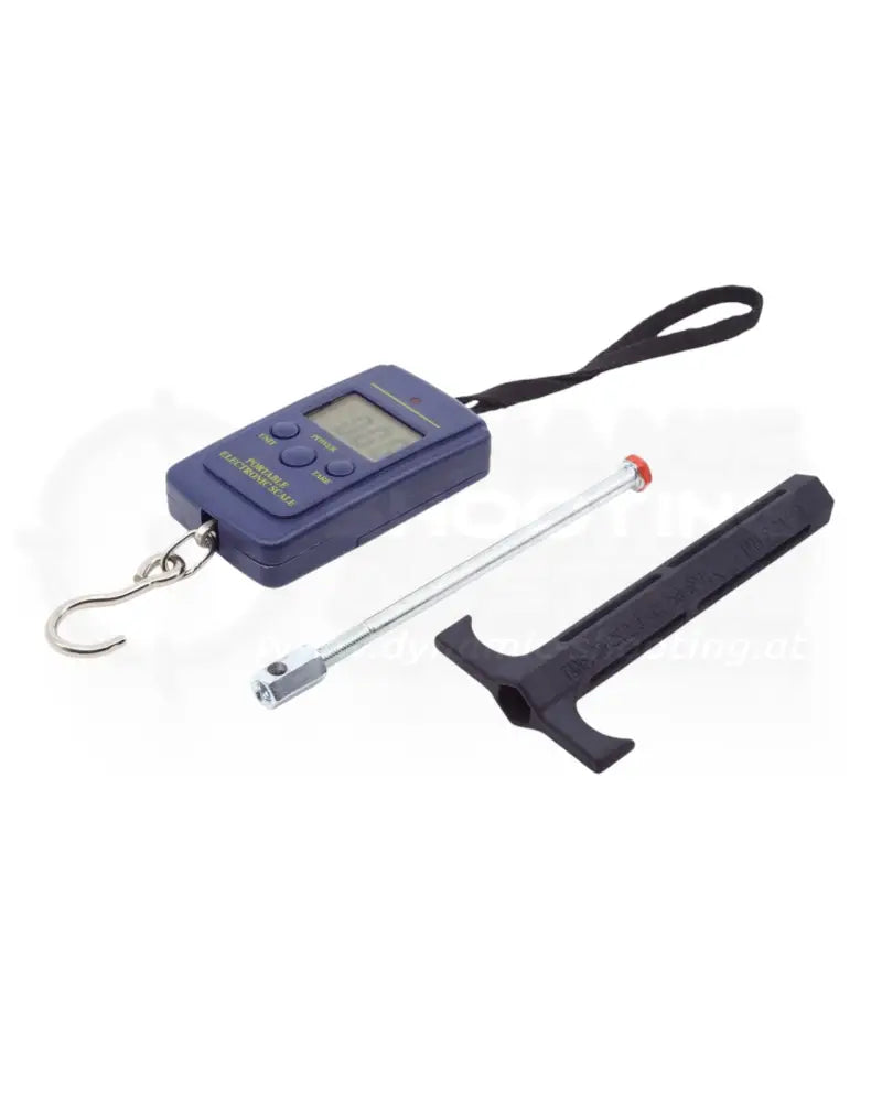 Die Rückstoßfeder wird in das Gerät eingesetzt, die digitale Waage angebracht und die Feder bis zur (modellabhängigen) Markierung komprimiert. Der digitale Messwert zeigt präzise, ob die Federkraft im Sollbereich liegt oder bereits nachgelassen hat – ein wichtiger Faktor zur Vermeidung von Funktionsstörungen oder ungewollten Veränderungen im Schussverhalten.