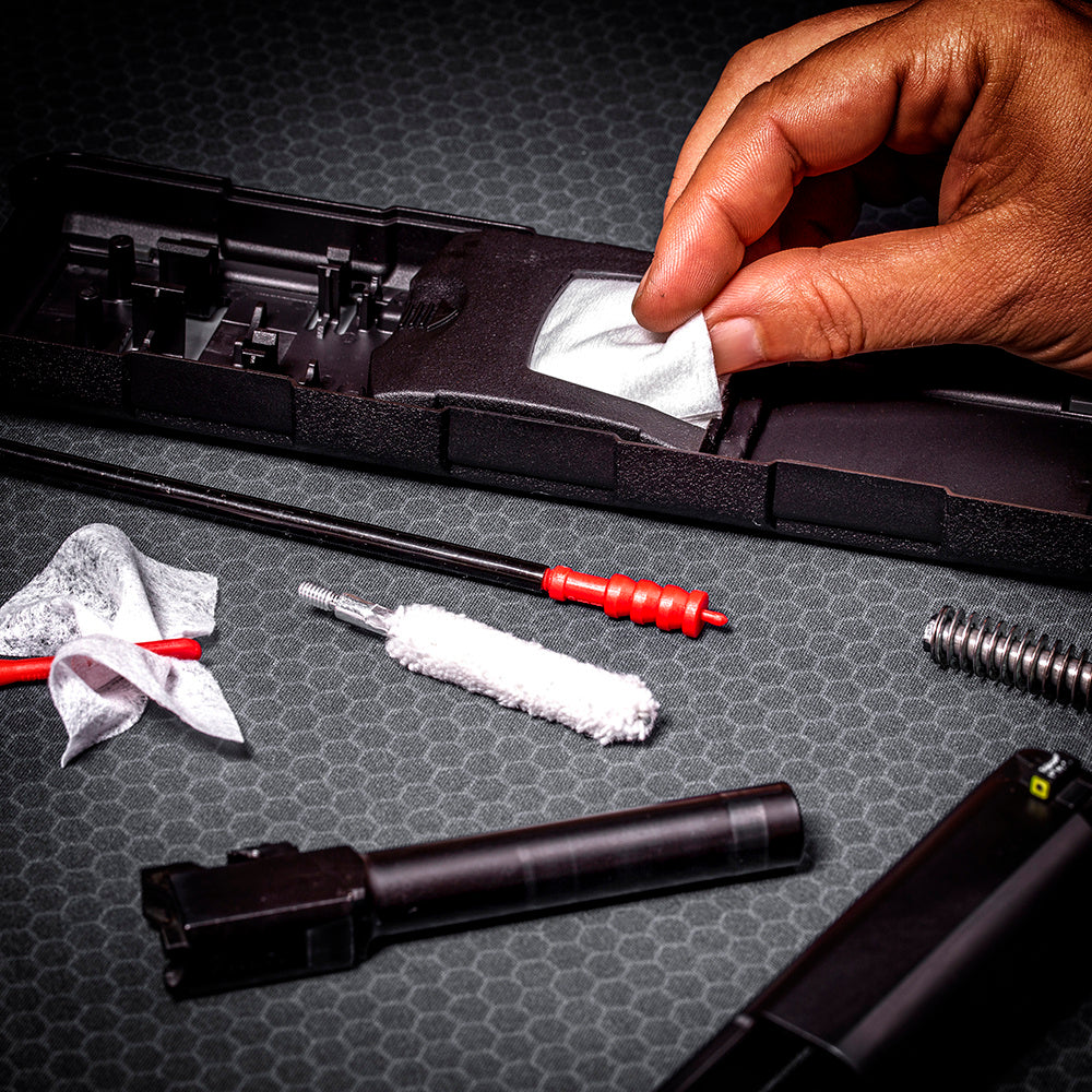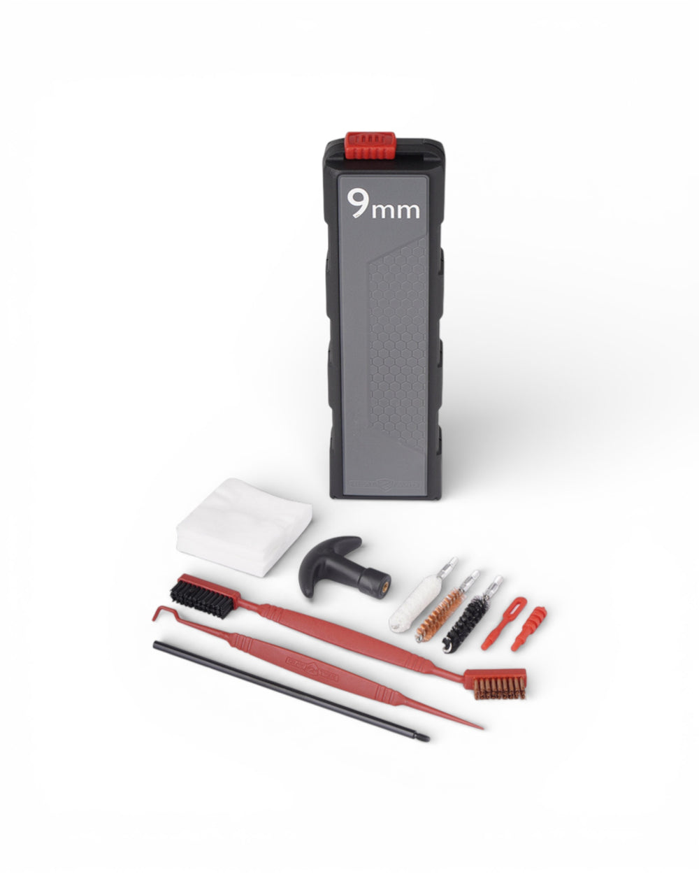 Das Real Avid Prime-9 Reinigungsset ist ein kompaktes Kurzwaffen-Reinigungsset für Pistolen und Revolver im Kaliber 9 mm, .38 Special und .357 Magnum. Der Fokus liegt auf einer vollständigen Waffenpflege, nicht nur auf der Laufreinigung. Alle Werkzeuge sind im stabilen Butterfly-Case sauber fixiert, die Box lässt sich flach aufklappen und bietet direkten Zugriff auf jedes Teil ohne lose Komponenten im Gepäck.