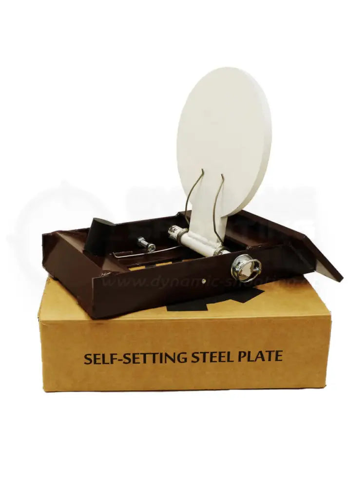 Dieses Stahlziel kann entweder normal aufgestellt werden sodass es nach dem Beschießen liegen bleibt oder mittels 1 oder 2 Federn (je nach gewünschte Rückstell-Geschwindigkeit) so eingerichtet werden, dass es sich nach dem Beschießen wieder von selbst aufstellt. Dadurch wird das Training um einiges effizienter da man nicht nach jedem Schuss das Stahlziel per Hand aufstellen muss.