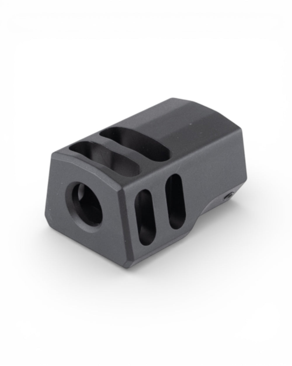 Der Toni System Kompensator ist für Läufe mit 1/2x28 Mündungsgewinde ausgelegt und ist speziell konzipiert für die Walther PDP. Die leichte Aluminiumkonstruktion ist für den sportlichen Einsatz konzipiert und zielt darauf ab, Mündungsanstieg bei schnellen Schussfolgen zu reduzieren.